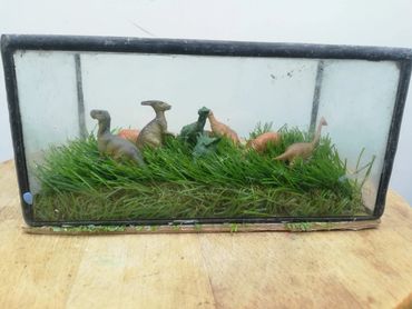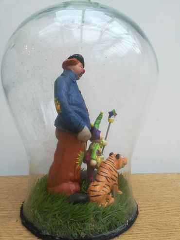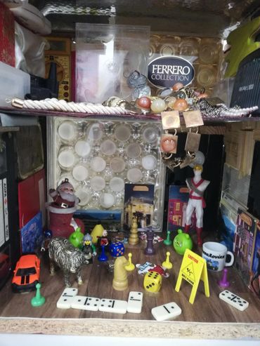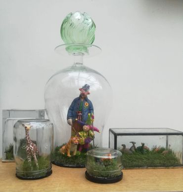All the artwork has been created in my art shed at the back of the garden at home, with the artwork varying in size and mediums, from canvases, altered furniture and life-size pieces.