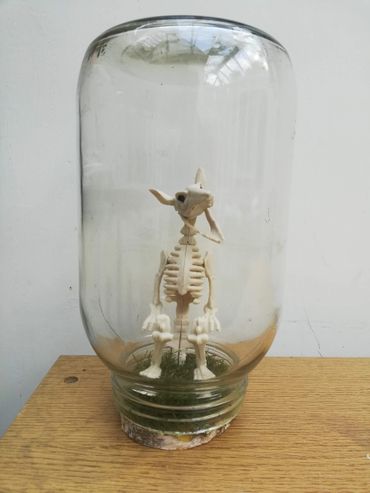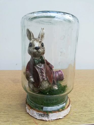 What would happen if rabbits grew wings? I don't know, but I liked the idea. The rabbit is from a broken lamp found at the dump.